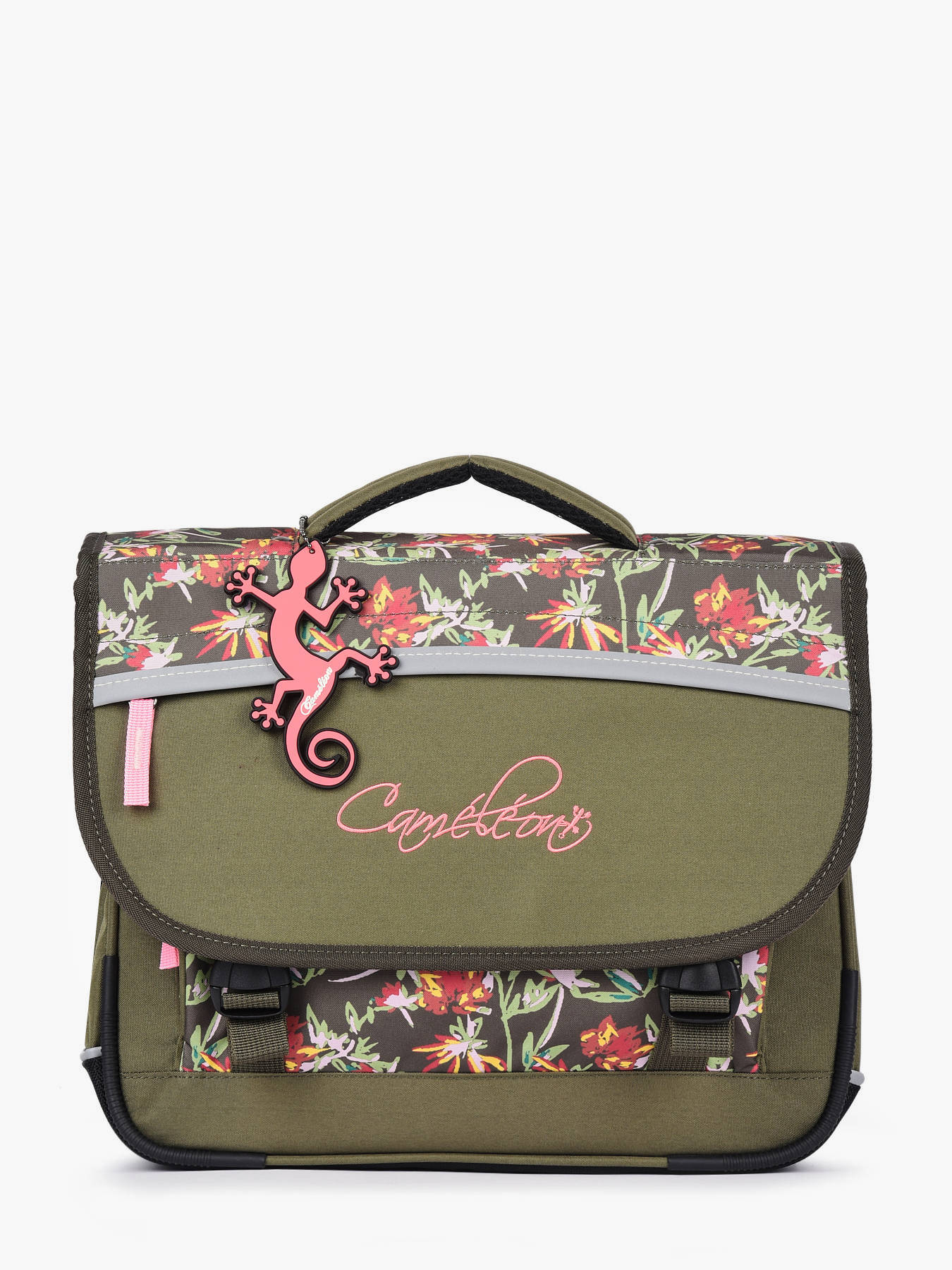 35 cm - 8 liter - 0.82 kg ~ Deze boekentas komt uit de Basic collectie van het merk Caméléon. Met een breedte van 35 cm is dit model ideaal voor de kleuterklas en het eerste leerjaar! Dit model bestaat uit twee opbergvakken, die een schriftje (24x32 cm) en andere kleine spulletjes kunnen bevatten. Daarnaast beschikt dit model ook over een ruim voorvak met rits, en een plat opbergvakje in de overslagflap vooraan. Aan de binnenkant is er ook een langwerpig opbergvak voor een meetlat voorzien. Uw kleine spruit zal geen problemen hebben om de boekentas te openen en sluiten, dankzij het veilige kliksysteem en de soepele ritsen. Voor optimaal comfort zijn de rugzijde en schouderbandjes extra verstevigd. Deze schooltas is ook voorzien van reflectoren, zodat uw kind zich veilig in het verkeer kan begeven.