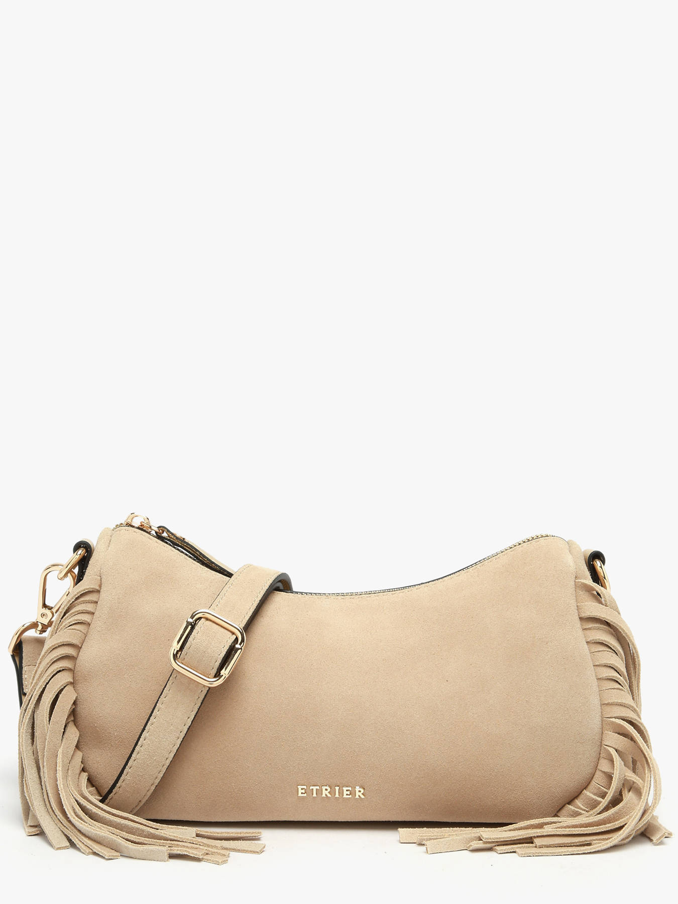 De cross body tas COUNTRY van ETRIER belichaamt een vrije en elegante stijl, de signatuur van de lijn. Gemaakt van suèdeleer met een achterkant in glad leer, valt hij op door zijn iconische franjes en zijn moderne-chique uitstraling. De ritssluiting beschermt je persoonlijke spullen en maakt toegang tot je essentials eenvoudig. Praktisch, hij kan als cross body tas worden gedragen dankzij de verstelbare en afneembare schouderriem, wat optimaal comfort en aanpasbaar draagcomfort biedt. Aan de achterkant zorgt een vak voor snelle toegang tot je essentials, terwijl aan de binnenkant een steekvak en een ritsvak een georganiseerde opbergruimte garanderen. Dit model in maat S wordt aangevuld door een groter model in maat M, ideaal voor wie meer ruimte wil zonder in te boeten op stijl en functionaliteit.