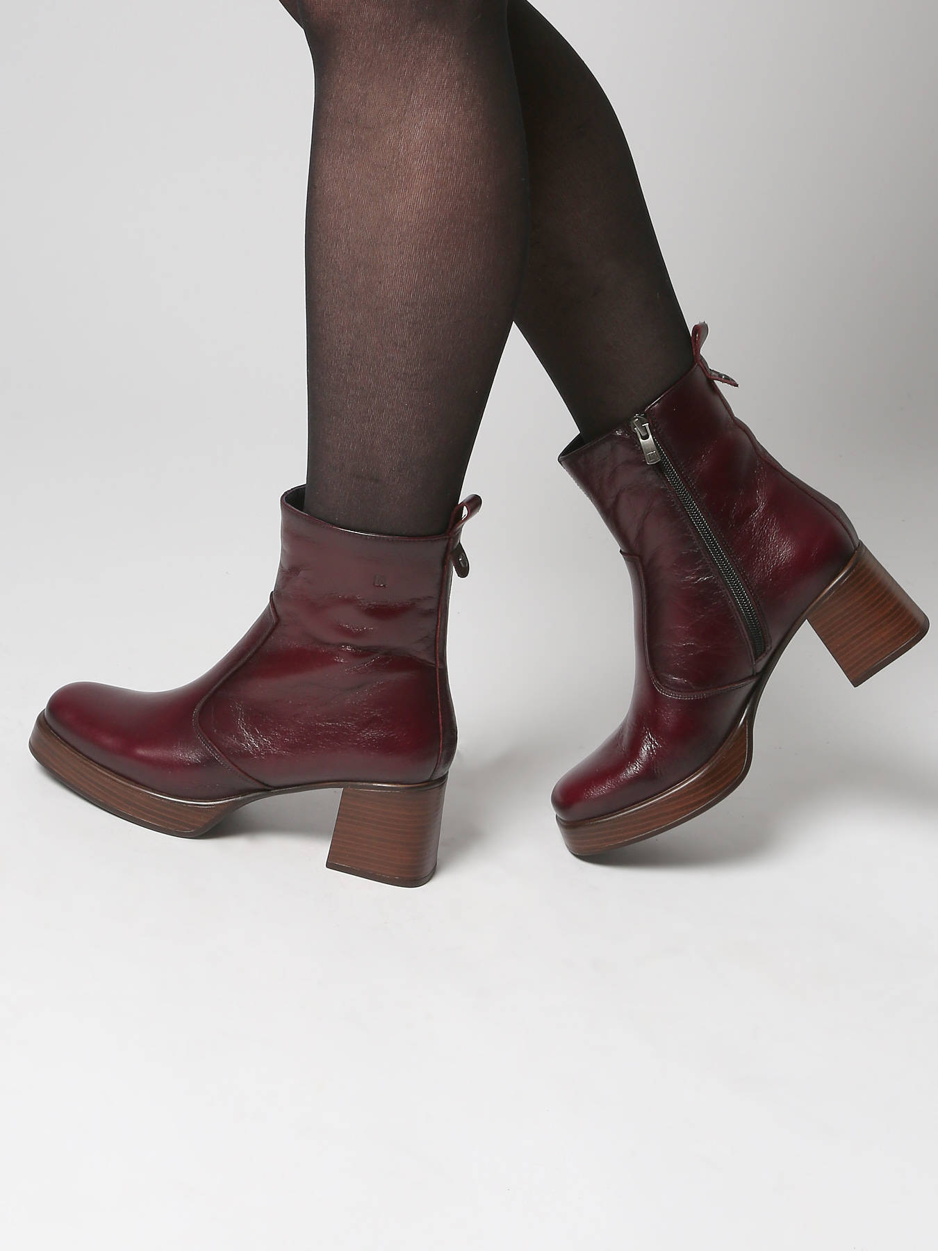 Enkellaarsjes met hak uit leder