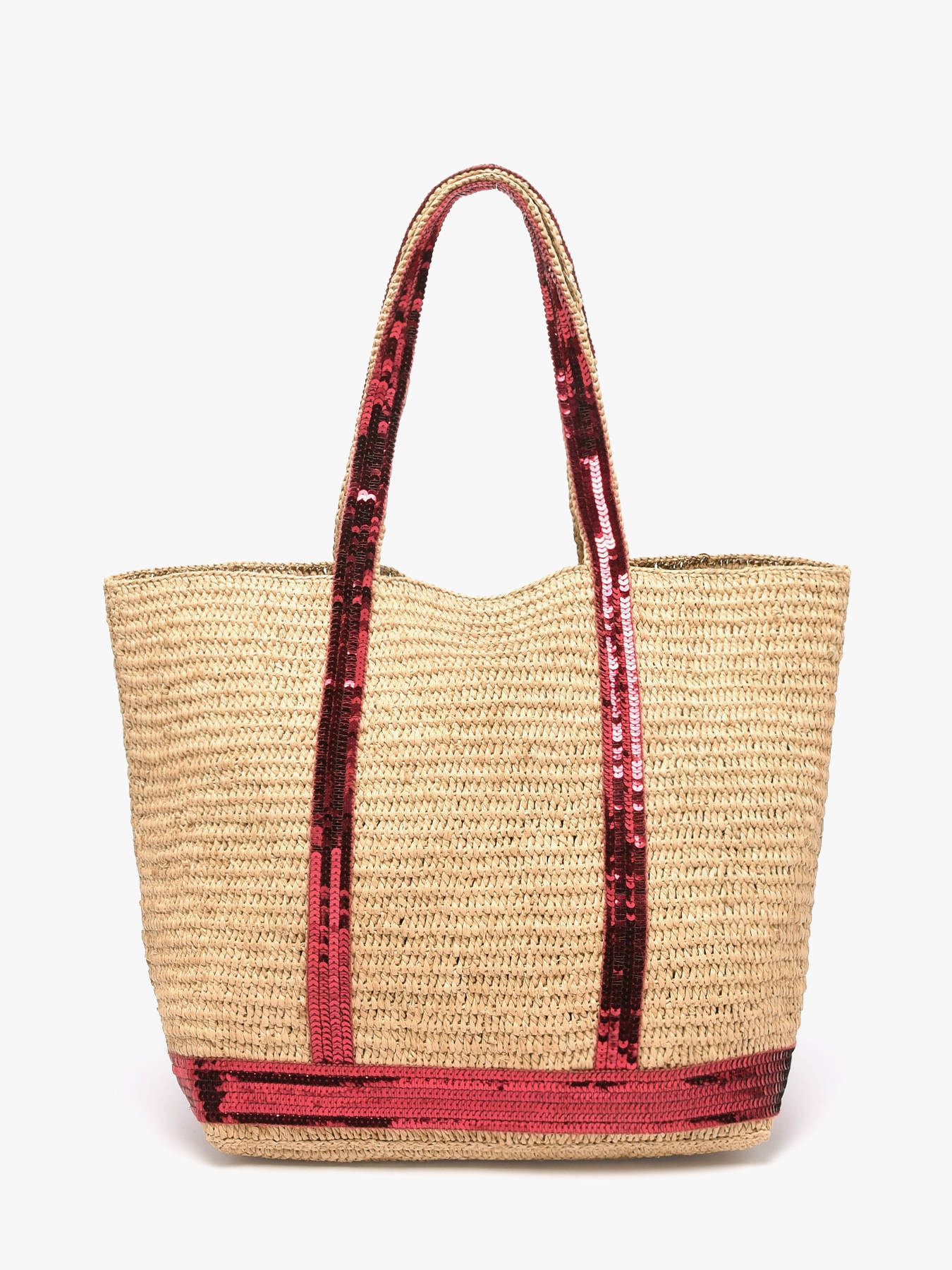 Handtas le cabas raffia pailletten