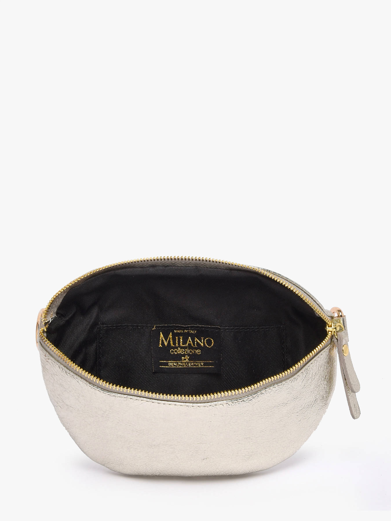 Dit heuptasje uit de Nine collectie van Milano bezorgt jouw outfit een trendy accent! Dit damesaccessoire is gemaakt van soepel rundsleer met een metallic craquelé finish en goudkleurige hardware. Het heuptasje sluit met rits, en beschikt over een compact interieur. Perfect om al jouw essentiële spulletjes veilig in op te bergen. De lederen riem is verstelbaar, waardoor u deze comfortabel over de schouder of rond de heupen kunt dragen.