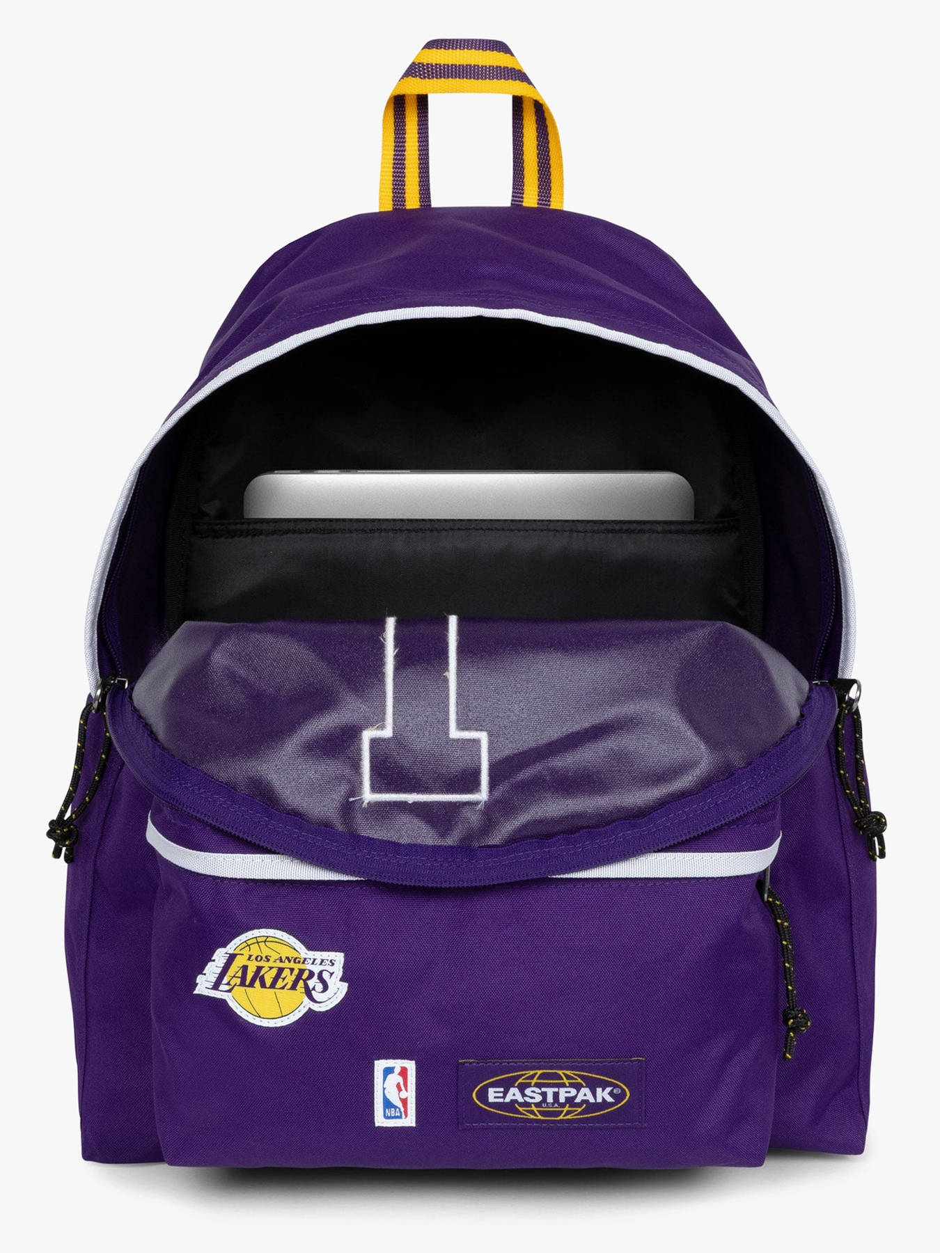 Rugzak 1 compartiment met 14" laptopvak van de lijn Eastpak x nba van Eastpak, om ofwel in de hand ofwel op de rug te dragen.