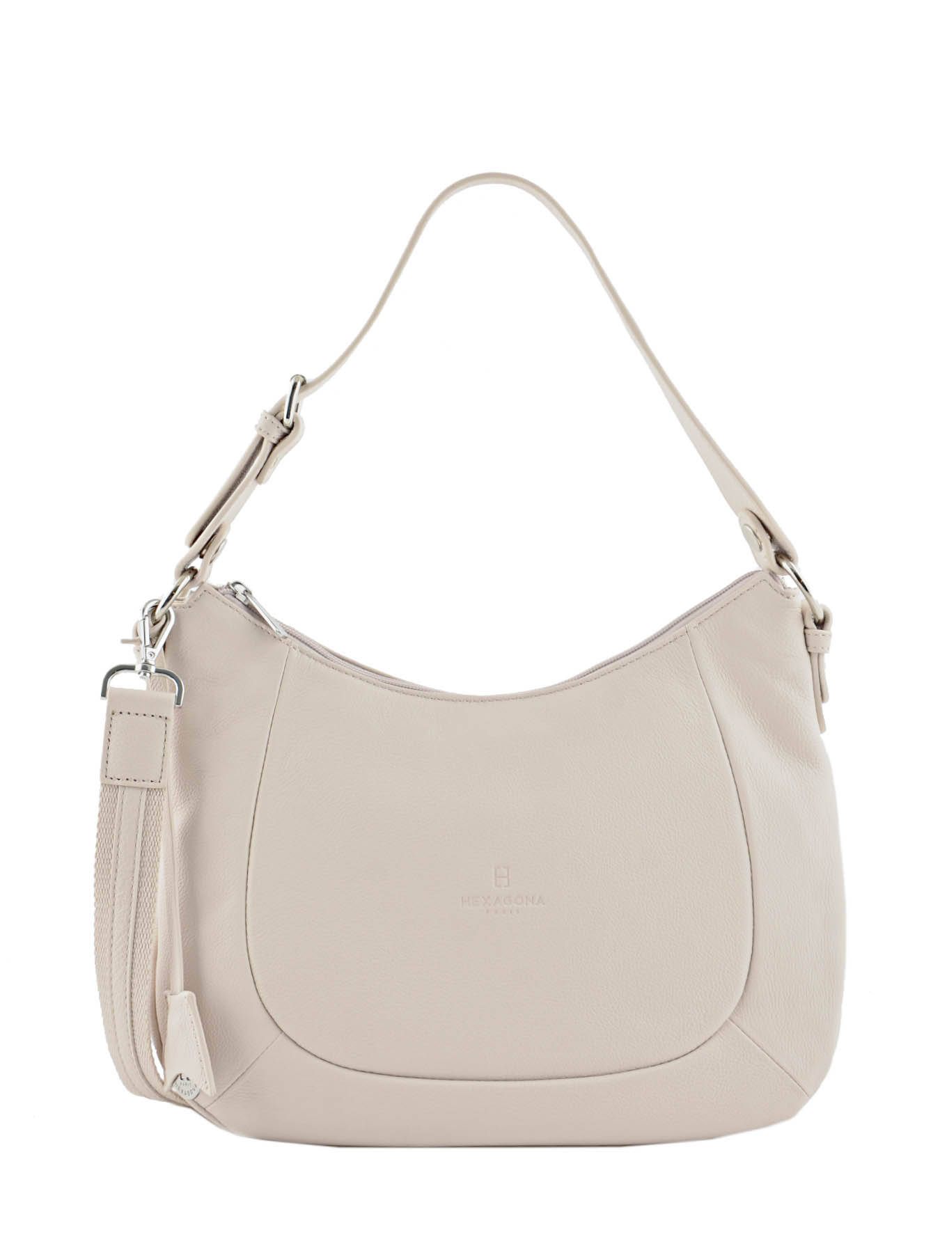 Deze lederen schoudertas uit de 'Pretty' collectie van Hexagona is klassiek en praktisch. Z'n functionele vorm en kwaliteitsvolle grainé leder zullen u zeker weten te bekoren. Deze tas met ritssluiting beschikt over twee compacte opbergvakken, gescheiden door een middenvakje met rits. Daarnaast zijn er nog twee steekvakjes en een extra zakje met rits voorzien. Dankzij het verstelbare hengsel kunt u dit 'Pretty' model zowel in de hand als kort over de schouder dragen. Of gekruist, dankzij de afneembare schouderriem.